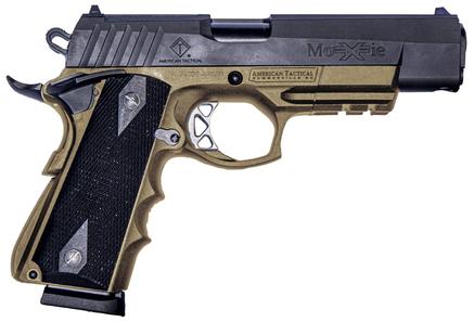American Tactical’s FXH-45 Moxie. Is a Hybrid 1911The FXH-45 Moxie is not your granddaddy's 1911. American Tactical Imports presents an all new take on the 1911 pistol with a polymer frame with two metal inserts that provide added stability and durability. This single action pistol has a 5" barrel surrounded by a 4140 steel slide which features a Parkerized finish for durability. You're sure to notice right away how ergonomic the Moxie's grip is, with finger grooves on the front strap and an extended beavertail. A removable top plate on the slide permits the addition of an American Tactical optic mount (not included) so you can add a red dot sight to the Moxie. The slide accepts Glock style front and rear sights, and the pistol is compatible with most standard 1911 parts and grips. If you want something besides just another all-steel 1911, the FXH-45 Moxie is right up your alley!