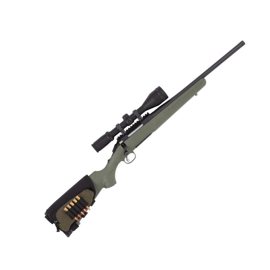 The Adjustable Buttstock Shell Holder attaches to the buttstock of any rifle with an adjustable hook and loop strap system. individual shell loops hold 5 cartridges, and a zippered pocket holds other accessories, like clips, hearing protection, or Hunting aids. Soft plush fabric covers the cheek piece for comfort during shooting.