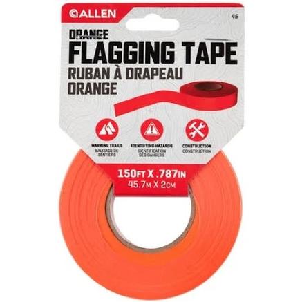 Whether you are plotting a leisurely hike through your property or planning a hunting route, the Allen Company Flagging Tape is right for you. Knowing how to mark a trail and what to use is important. Allens flagging tape is an ideal flagging tool to mark property lines, hiking trails or when scouting out a campsite. Ergonomically designed to easily be tied to objects or trees while withstanding weather elements with its highly durable construction. Made of vibrant, orange-colored material, your markings will remain highly visible in the outdoors from long distances apart. Pack includes 3 rolls, each measuring 150-feet long, providing plenty of material to make your mark along the trail.