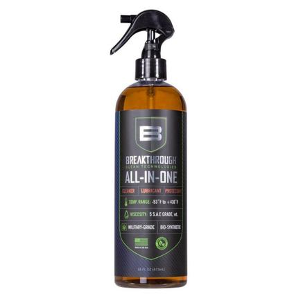 This Breakthrough Clean Bio-Synthetic All-In-One (CLP) is expertly crafted using the finest base oils, additives, and most effective solvents that modern chemistry has to offer. Providing superior two-in-on cleaning and lubrication, the All-In-One (CLP) removes carbon build-up, lead deposits, oil, and grime, while penetrating deep to provide protection from rust and corrosion, all the while minimizing friction and wear from metal-to-metal contact.