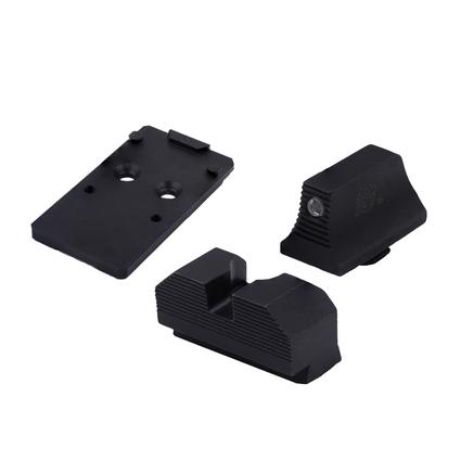 XS Sights' ready-made Optic Plate and Sight combo offers a one stop shop mounting solution, while increasing window visibility and providing a simple back up sight picture. XS OR Sights for Glock pistols are low-profile BUIS that do not obstruct your field of view. XS OR sights eliminate the need for height calculations, giving you the perfect co-witness out of the box. Designed for strength and reliability, the XS Optic Plates for Glock MOS pistols are available for RMR footprint optics, providing a secure and seamless mounting solution.