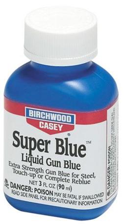 A double-strength blueing solution designed for highly polished steel parts and hardened steel containing nickel and chrome alloys. Super Blue will provide a dark black-blue. Use caution to confine the solution to the area to be reblued as it may have an effect on the existing blue. 3 oz liquid.