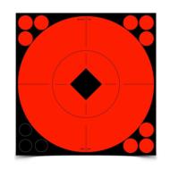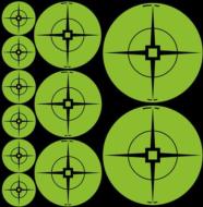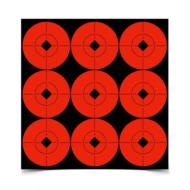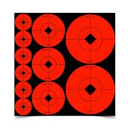 Self-adhesive, fluorescent red target spots create instant bulls-eye for all types of target practice. The high contrast, radiant red color lets you see a sharper sight picture and bullet holes more clearly for better scores and smaller groups. And a perforated back panel makes this package into a handy target spot dispenser.
