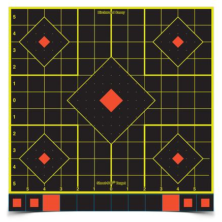 FIVE TARGETS ON EACH SHEET – USE CENTER TARGET FOR SIGHTING-IN AND FOUR SMALLER TARGETS FOR TESTING RESULTS OF VARIOUS BALLISTIC LOADS OR FOR CONFIRMATION OF SIGHT-IN GROUPS. CONVENIENT 1 INCH NUMBERED GRID LINES SIMPLIFY SCOPE ADJUSTMENTS.