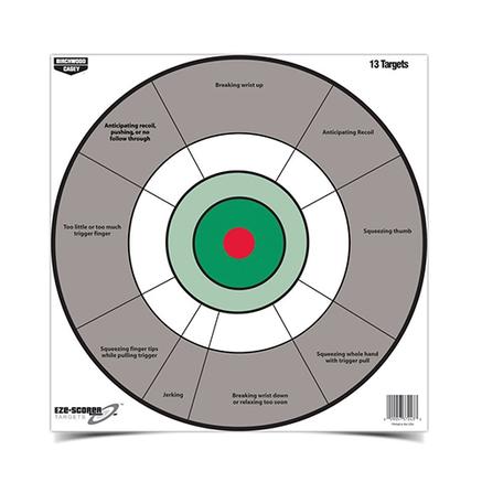 WHETHER YOU ARE A BEGINNING HANDGUN OR AN EXPERT LOOKING FOR HONEST FEEDBACK ON YOUR SHOOTING, THE EZE-SCORERâ„¢ 12" HANDGUN TRAINER IS FOR YOU. COMBINED WITH DISTINCT INSTRUCTIONAL ZONES, NOT ONLY MAKE SHOT PLACEMENT HIGHLY VISIBLE, BUT OFFER HELPFUL CORRECTIONS TO TIGHTEN GROUPS AND BUILD CONFIDENCE.