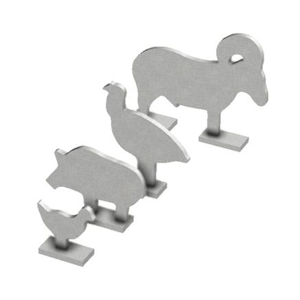 4pc set includes 1 of each target style (chicken, turkey, pig and ram). Powder coated finish.