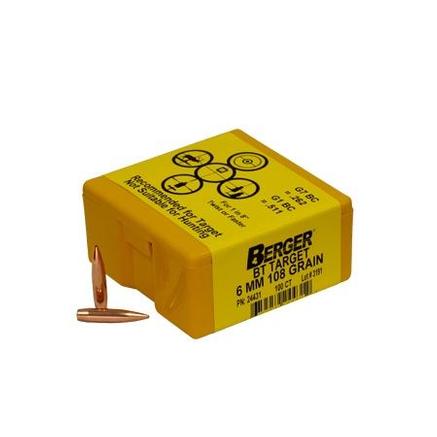 Berger Match Grade Target Bullets 6mm .243" 108 gr BT Target 100/rd