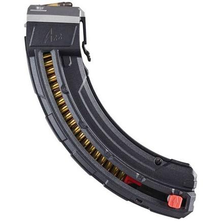 Get the most out of your A22 rifle with Butler Creek_s A22 25-round magazine. This Savage Arms-approved magazine brings extra capacity to the rifle. The magazine can be loaded traditionally or by using the red loading assist lever on the side. It features a stainless steel spring and all metal header and feed lips for reliable feeding. A remaining round indicator on the side lets you know when the magazine is running short of rounds. Connect two magazines together for double the firepower. The A22 25-round magazine gives you more time behind the rifle, and less time reloading it. Anti-tilt follower