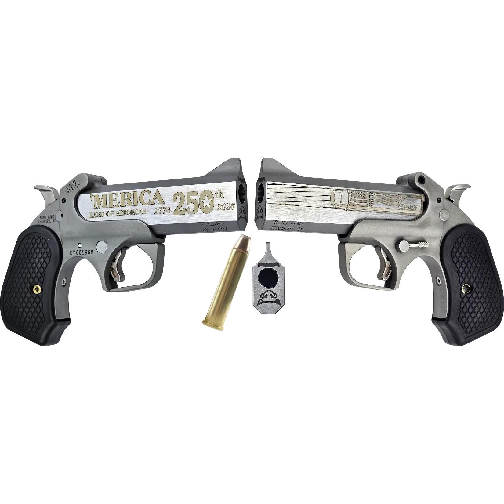 Bond Arms 250th 'Merica Derringer .45-70 Govt 1rd Capacity 4.25" Stainless Barrel Rough Finish B6 Extended Grip