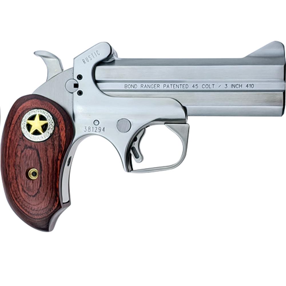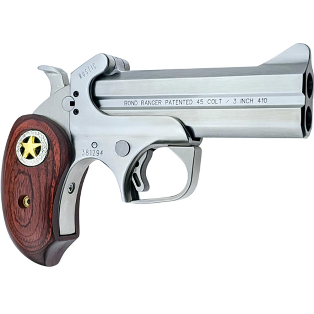 The Bond Arms Rustic Ranger is a special edition handgun which is now available through most dealers. It is similar in specifications to the Bond Arms Ranger II with a couple main distinctions including the extended rosewood two-tone star grips and the leather premium driving holster in a natural finish. For years the Ranger II has been an icon in the Bond Arms line and the Rustic Ranger improves on that with a classic wood and leather look.