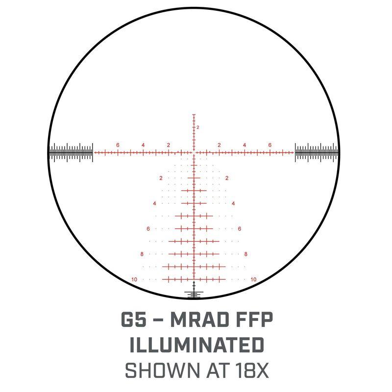 The Match Pro ED G5I model features the all-new G5 reticle developed with George Gardner of GA Precision. The reticle features additional 0.25 MRAD intervals, a more evenly distributed tree shape with additional holdover windage dots and numerical identifiers on both sides. It also features more clearly identifiable mover target markings.