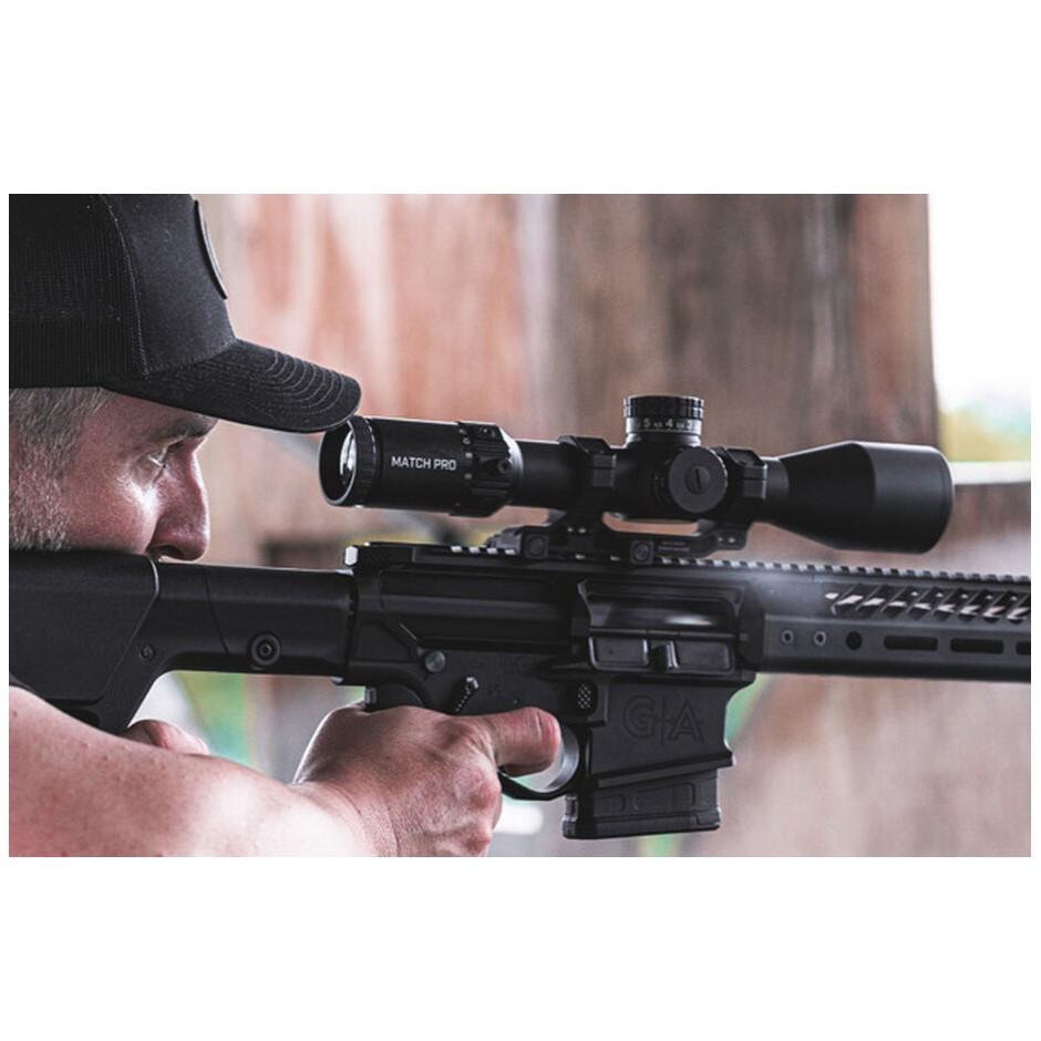 The Match Pro has always been a centerfire-rated riflescope, and it still is - But it's perfect for rimfire use like NRL22 and PRS Rimfire due to its short distance 15-yard parallax side focus. Match Pro ED carries on the tradition and has been optimized for rifle platform versatility whether a on a rimfire or large caliber semi-auto.