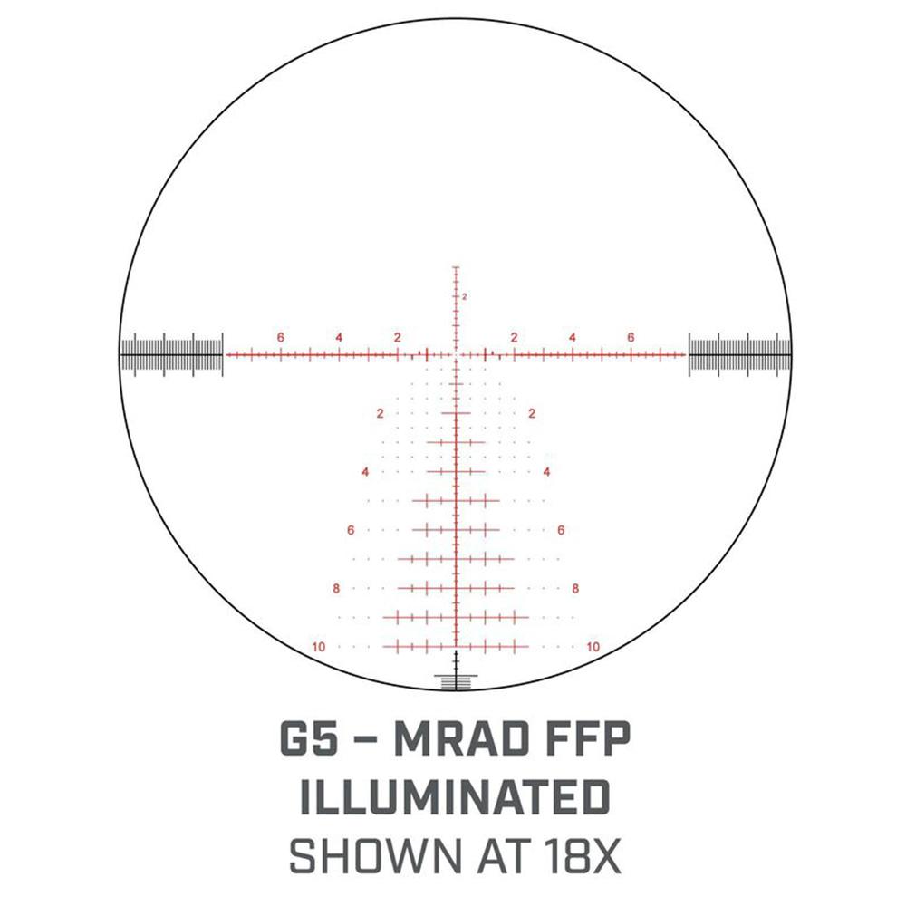 The Match Pro ED G5i model features the all-new G5 reticle developed with George Gardner of GA Precision. The reticle features additional 0.25 MRAD intervals, a more evenly distributed tree shape with additional holdover windage dots and numerical identifiers on both sides. It also features more clearly identifiable mover target markings.