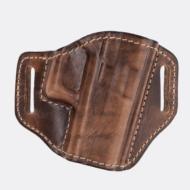 Crafted from premium leather, the Model 57 Remedy concealed weapon holster offers an open-top design for semi-automatics and small frame revolvers—and provides quick and easy access to the gun. This model features deep contour molding on the front of the holster for improved comfort and to reveal the shape of the handgun it secures. Designed for hip or rear hip carry, the Model 57 is a leather belt holster of timeless style and quality.