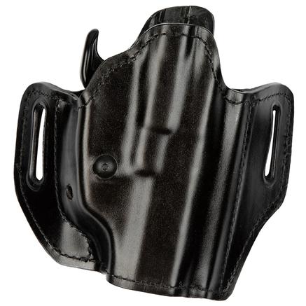 The Bianchi 126GLS Assent is an open-top holster with a high-ride hip carry. The 126 offers a low-profile, contoured body-hugging design with GLS (Grip Locking System), an innovative technology that automatically secures the weapon when holstered, and releases it upon application of the middle finger with a standard shooting grip, for a more intuitive and safer release. Highly versatile, the 126GLS is customizable and adjusts to securely fit over 250 firearms. The 126GLS Assent combines the luxurious look and feel of a premium full-grain leather exterior with a sturdy laminate synthetic liner. The holster fits 1.5” (38mm) belt widths.