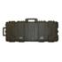 A thick, full-length O-ring gasket creates an internal dustproof/waterproof seal that renders the case impenetrable against dirt and moisture. The six powder-coated, steel draw latches are silky smooth to operate and eliminate any chance of accidental opening during travel. Double padlock positions allow for maximum security during travel. Steel hinge pins provide for smooth open-and-shut operation of the top lid. A collapsible carry handle and side pull handle along with ball-bearing wheels provide the option to pull or carry the case during travel. A large pressure relief valve completes this feature-rich gun case that will serve you well for a lifetime of dependable use.