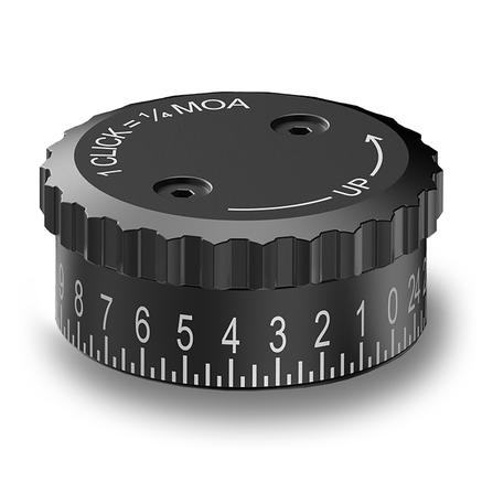 The Burris Knob Synergy Advanced Exposed Windage knob provides precise lateral adjustments in a target-style design. It is engineered to complement the performance of the advanced elevation turret, offering ¼ MOA click increments, a mechanical zero stop, and laser-engraved markings to help maintain accurate adjustments. To shift the point of impact left, turn the knob clockwise; to move it right, turn it counterclockwise. The design allows for tool-less access and delivers a precise feel. This windage knob is an ideal solution for long-range shooters who require quick wind corrections.