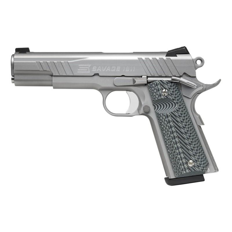 After more than a century of evolution, John Moses Browning's venerable single-action semi-auto is still standing strong. The gun that beat the Savage Model 1907 to become the US Military's M1911 is now being given the Savage treatment. The Savage 1911 is built from stainless steel and has a dual recoil spring and machined sear and disconnector. While the look pays homage to the original, the Savage 1911 is built for hard use. From its nitride coated titanium firing pin, to the target crown on the barrel, this 1911 delivers accuracy and reliability. This is Savage.