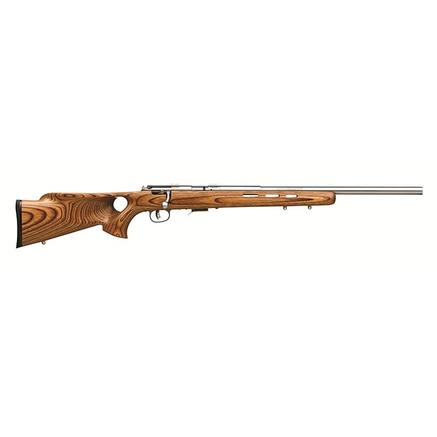 Drive tacks with the bolt-action 93R17 BTVS. It combines Savage's user-adjustable AccuTrigger technology and a 21-inch, button-rifled, heavy stainless steel barrel to deliver unbeatable accuracy. The rifle features a wood laminate stock with a custom thumbhole, as well as a 5-round detachable box magazine.