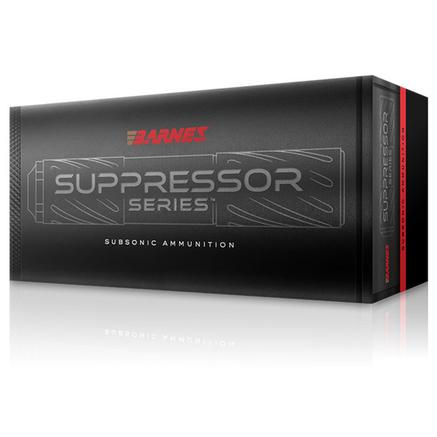 SUPPRESSOR SERIES is a purpose-built, subsonic ammunition line optimized for suppressor use, featuring premium Sierra projectiles loaded to Barnes’ exacting standards. These subsonic loads utilize clean-burning propellants to reduce gas blowback, improve cycling in semi-auto platforms, and deliver noticeably quieter shots through suppressor-ready firearms.