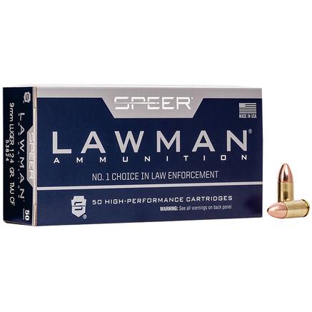 Speer Lawman Cleanfire Handgun Ammunition 9mm Luger 124gr TMJ 1090 fps 50/ct