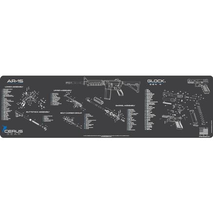Two of the most widely used firearm models, the AR-15 and Glock are both featured on this extra large cleaning ProMat. Clear and accurate images of each every component in both guns. Get the best of both worlds with this combo mat.