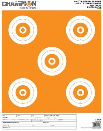 Champion Shotkeeper Targets White & Orange 5 Bull, Large, 12/Pack