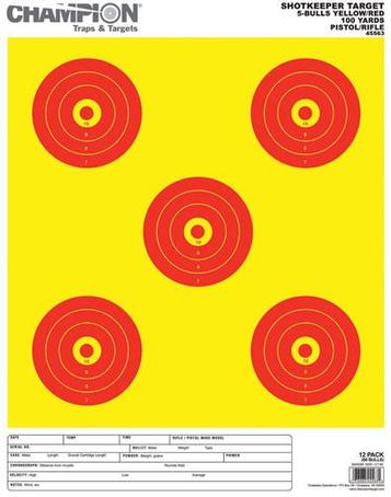 Champion Shotkeeper Targets Yellow & Red 5 Bull, Large, 12/Pack