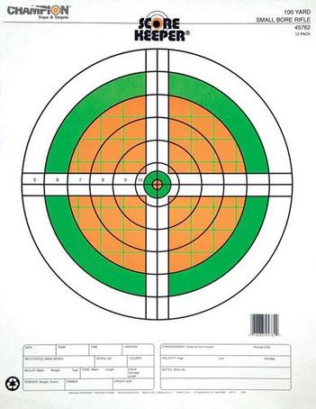 Champion Scorekeeper Targets - Fluorescent Orange & Green Bull - 100 yd. Small Bore Rifle (12-Pack)