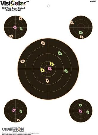 Champion VisiColor High-Visibility Paper Targets 8" Bull w/4 extra Bulls, 10/Pack