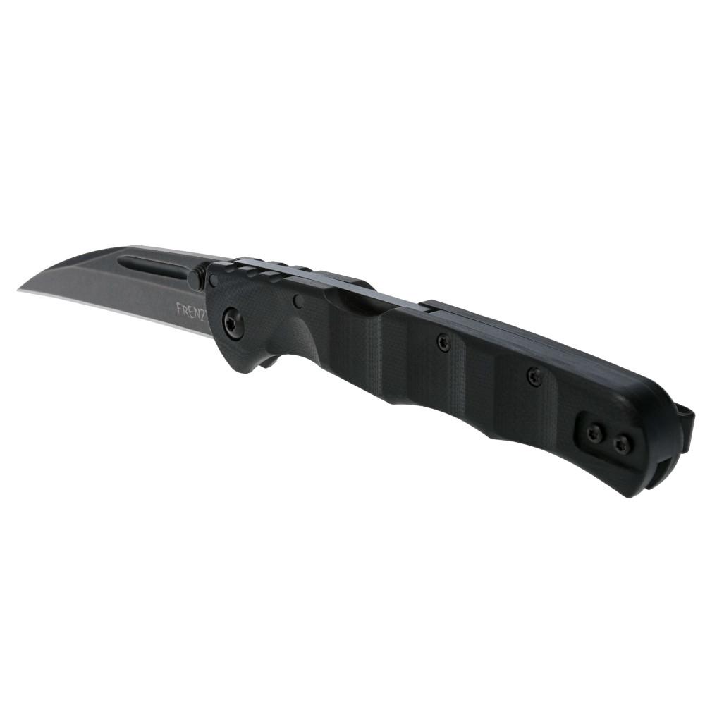 The Frenzy II is one versatile folder, designed with both power and precision at the forefront. This exceptional tool features a 3.5" sheepsfoot blade crafted from high-performance, 3V steel, which has long been known for its outstanding edge retention and resilience. The unique sheepsfoot design easily cuts and slices through a variety of materials, tackling any task you or the great outdoors present it with, whether big or small. That rugged, built-for-anything blade attaches to a robust G-10 handle that delivers a secure grip, even in the most challenging conditions, so you can get the job done comfortably and confidently. And the handle’s shape keeps ergonomics in mind, contouring to users’ hands for a fatigue-free hold through hours of controlled, precision cutting. Perhaps the most important feature, however, is Cold Steel's legendary Tri-Ad® locking mechanism, known for its unparalleled strength and reliability. This innovative lock ensures the blade remains securely in place during use, providing peace of mind in even the most demanding situations.