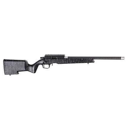 Christensen Arms Ranger 22 Rifle, 22LR Grey/Black Stock. This Christensen Arms Ranger 22 is chambered in .22 LR and comes with a carbon fiber composite rimfire stock that features a tan with black webbing finish, palm swell, ambidextrous grip, flat forend, palm hook, sling studs and a recoil pad. But Christensen didn't stop there, the action is a black anodized precision aluminum receiver with a steel lug insert and includes dual ejectors, dual opposing locking lugs, 0 MOA optic rail, threaded bolt handle, trigger tech Rem 700 trigger and uses Ruger 10-22 compatible magazines. And to top it all off the Ranger 22 rifles come with a Christensen Arms carbon fiber tension 22" barrel with a 1/2"x28 TPI threaded muzzle and a .22 LR Bentz match chamber. The NEW Ranger 22 brings a rimfire rifle back to the Christensen Arms lineup. The Ranger 22 weighs in starting at 5.1 pounds and is backed by a Christensen Arms Sub-MOA at 50 Yards Guarante
