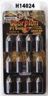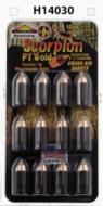 Harvester Muzzleloading Scorpion Funnel Point Bullets are electroplated with copper plating that does not separate from the lead core as with most jacketed bullets. Scorpion Funnel Point MAG Bullets operate to specs of all muzzleloaders. Packaged with Crush Rib Sabots, excluding the 54 caliber packs.