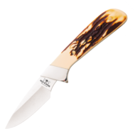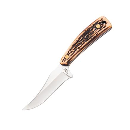 Bear & Son Upswept Skinner Fixed Knife 3-1/8" Clip Point Blade Stag Delrin with Leather Sheath
