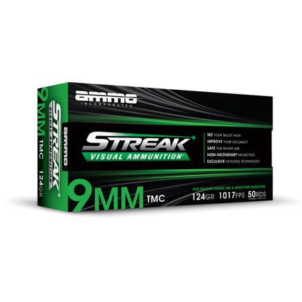 Ammo Inc Streak Green Handgun Ammunition 9mm Luger 124gr TMC 1065 fps 50/ct
