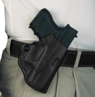This unique holster has been reduced to the barest of essentials, yet offers a secure grip on the handgun thanks to exact molding and adjustable tension device. The Mini Scabbard will accommodate belts up to 1 1/2" wide. Available in black or tan unlined leather. Note: Some models without adjustable tension device.