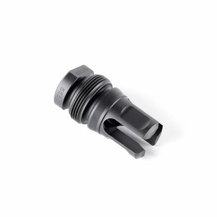 The Xeno 3-Prong Micro Flash Hider works superbly as a stand alone muzzle device on 5.56 NATO/.223 REM caliber platforms, but really shines when paired with a Xeno Adapter equipped suppressor. The Xeno 3-Prong Micro Flash Hider gives you a short, lightweight suppressor mounting option with non-negotiable repeatability and a solid return to zero — ideal for precision-minded shooters. Even on short barrels with flashy ammo, the Xeno 3-Prong Micro Flash Hider is tuned specifically to .223 sized bullets and easily tames muzzle flash prevalent in this caliber. Despite its diminutive size, the Xeno 3-prong Micro Flash Hider, paired with a Xeno Adapter, still provides you, hard core users, the durability and repeatability you’ve come to expect from Dead Air.