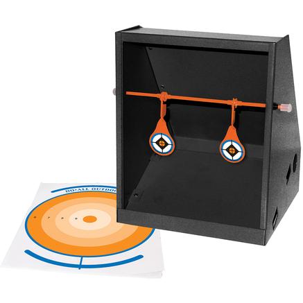 The Air Strike Pellet Trap is a great way to hone-in your shooting skills without buying expensive equipment, it makes the perfect beginners target for endless hours of fun. This portable target delivers a challenge by allowing you to choose between the spinning bullseye or paper targets (both included) to increase your shooting potential. It offers all-steel construction that provides maximum strength and durability to withstand the impact of 800 FPS maximum air rifles at 10 yards and all .177-caliber firearms. The Air Strike® Pellet Trap is quick and safe to setup and will have you shooting in no time.