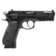 The CZ 75 SP-01 is a full-size SA/DA pistol that blends classic CZ 75 reliability with upgraded ergonomics and manufacturing from the NATO-approved P-01. It features an integrated 1913 rail, rubber grips, and a corrosion-resistant black polycoat finish.