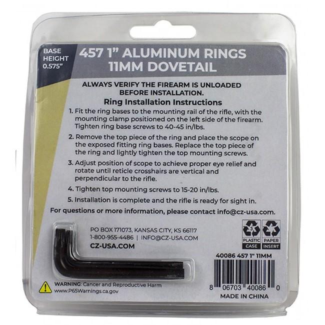 CZ Rings 457 455 1IN 11mm Dovetail Aluminum Base Height 0.575IN