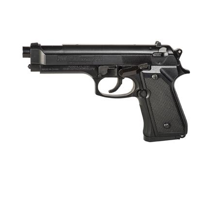 The Daisy Model 340 air pistol shoots BBs and features a 200 shot BB reservoir.