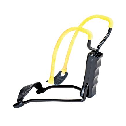 The Daisy Model B52 Slingshot sends your ammo at high speeds toward your target. The flexible wrist support is the key to providing steady and stable support for accurate shots. This wrist support then folds away for compact storage. Also features a molded sure-grip handle and a solid steel frame with extra-wide fork. Surgical latex rubber tubing and a rugged release pouch rounds out this powerful slingshot.