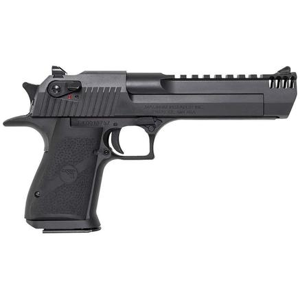 The Magnum Research Desert Eagle .357 Magnum is constructed of high quality carbon steel and is chambered in .357 Magnum with a 9+1 capacity. It has a 6" carbon steel barrel, a full Weaver style rail on top, and an integral muzzle brake.After 25 years of being accessorized, customized and re-imagined in countless movies, television shows and video games, the Desert Eagle Pistol has emerged as a pop-culture icon. It feature a full picatinny style accessory rail on the barrel from the end of the chamber to right behind the front sight and standard ambidextrous safeties. The Mark XIX Desert Eagle is a gas-operated, semi-automatic pistol with a trigger reach of 2.75" and a sight radius of 8.5". The construction of the Mark XIX Desert Eagle utilizes the latest CNC machine technology providing exacting specifications with tight tolerances creating a work of art in a precision firearm. The grip is anatomically formed and provides an ideal hand seating angle for two-handed shooting allowing for comfortable, rapid and accurate firing. The picatinny style accessory rail easily allows for aftermarket optics and scope rings.