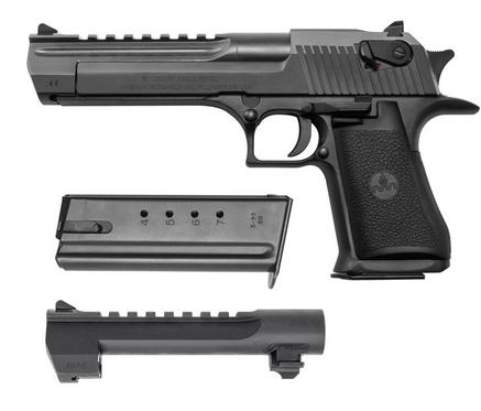 .50AE Mark XIX, 6” Barrel, Black, ships with 6” .44 MAG Black Barrel and .44 MAG magazine.