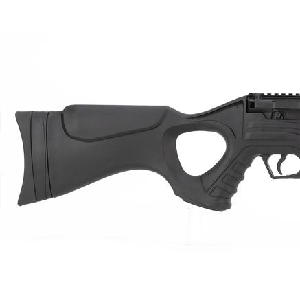 The Flash QE includes a fixed 165cc volume, 200 BAR, 2,900 PSI air cylinder and a built-in pressure gauge. It is also built with Hatsan’s patented anti-knock system to prevent gas wastage when the rifle is knocked or bounced.