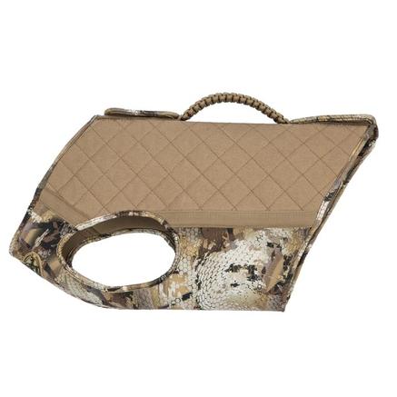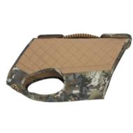 The Bloodline Elite Dog Vest from Rig'Em Right Waterfowl offers the utmost protection for your most reliable hunting partner. The unique 3-layer construction of the upper material consists of 3mm neoprene gives a next to "skin" for warmth and comfort. A thin layer of foam for added flotation, and an outer layer of heavy-duty canvas for protection from brush and briers. Also features 5mm neoprene throughout the chest for flexibility and warmth and a sturdy braided handle to help you buddy back in the blind. This vest has a more athletic cut around the neck and between the front legs to provide better mobility without rubbing and bunching. Heavy duty zipper with velcro closure over zipper.