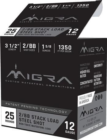 Migra Waterfowl Steel Shot Shotshell 12ga 3-1/2" 1-5/8 oz 1350 fps 2-BB 25/ct