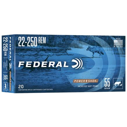 Federal Power-Shok Rifle Ammunition .22-250 Rem 55 gr SP 3050 fps - 20/ct
