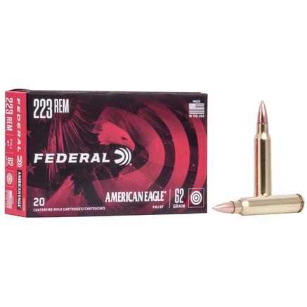 Federal American Eagle Rifle Ammunition .223 Rem 62 gr FMJ 3020 fps 20/rd
