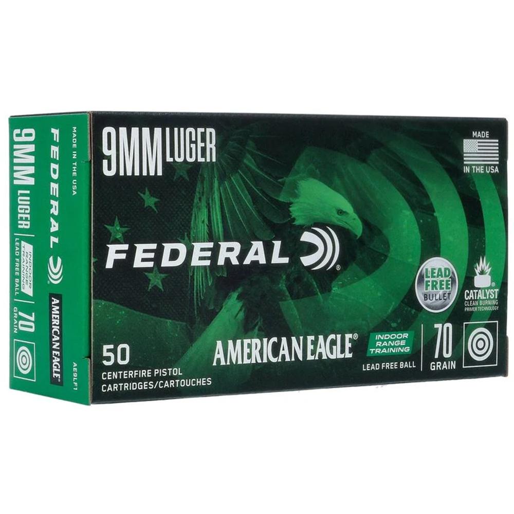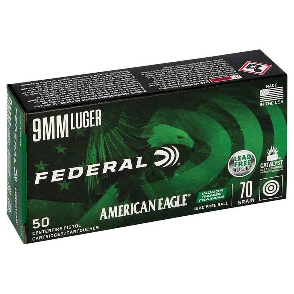 Federal American Eagle IRT Lead Free Handgun Ammunition 9mm Luger 70gr FMJ 1625 fps 50/ct